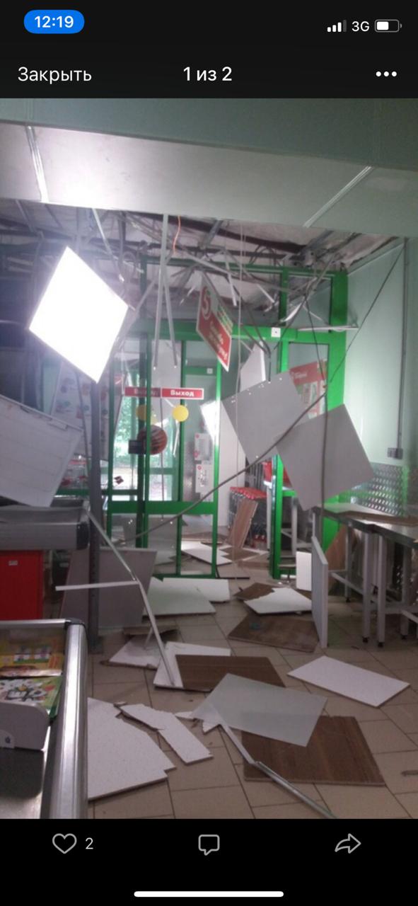 Повреждения в магазине, находящемуся в 3-х км от взрыв.