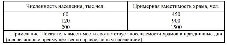 Исходя из этих цифр рассчитана потребная вместимость храмов в зависимости от численности жителей населенного пункта. См. скриншот: