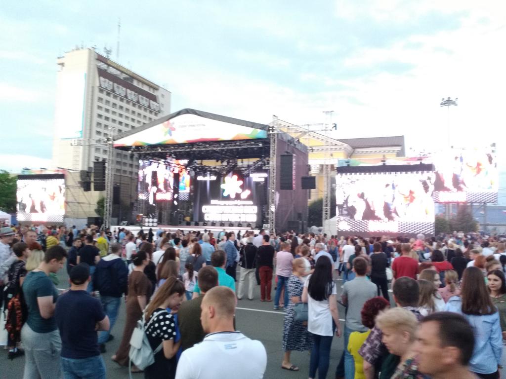 Открытие Международного фестиваля транслировалось на площади Ленина на четырех экранах.