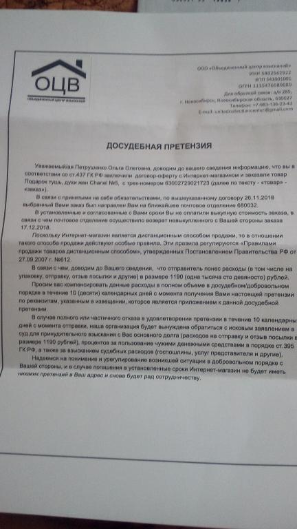 подскажите что делать в данной ситуации? P.S заказ навязали по телефону... посылку не забирала с почты... А сегодня письмо "счастья" так сказать пришло