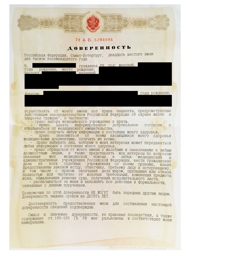 И уже без проблем по такой доверенности представитель сможет узнать ваш диагноз, лечение, запросить медицинские документы, присутствовать на приеме и даже принимать за вас решение о медицинском вмешательстве, если по каким-то причинам вы не сможете это сделать. Список того, что Вы готовы доверить, Вы в доверенности, письменно определяете сами.