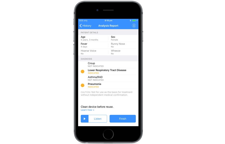 «Умное» приложение по звуку анализирует тип кашля, тембр, продолжительность, силу и другие параметры, в том числе редкие. На основе этих данных нейросеть формирует диагноз и дает рекомендации по дальнейшим действиям пациента. Описание алгоритма опубликовано авторами в статье A prospective multicentre study testing the diagnostic accuracy of an automated cough sound centred analytic system for the identification of common respiratory disorders in children в журнале Respiratory Research.