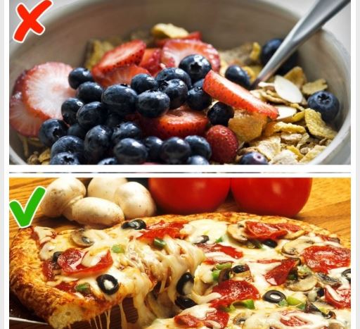 Но чем заменить каши? Диетологи советуют чашку каши заменить пиццей. Потому, что она действительно содержит свежие овощи, а комбинация белков, жиров и углеводов находятся в том соотношении, которое как раз и нужно организму.