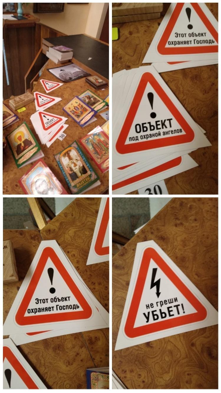 " Объект под защитой ангелов " , "Не греши, убьёт" , " Этот объект охраняет Господь " - таково содержание " охранных " знаков представленных удивленным покупателям.