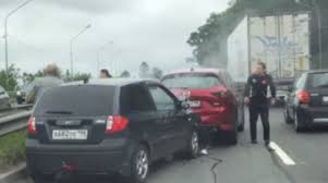 Утка, переводившая утят через Пулковское шоссе, заставила водителя «Мазды» очень резко остановиться, а водитель, управлявший «Хендэ», следовавшим за японской машиной, не успел вовремя нажать на тормоз, в результате чего произошло столкновение. Да не было у него такой возможности. Тем более, что крайне левая полоса - скоростная.