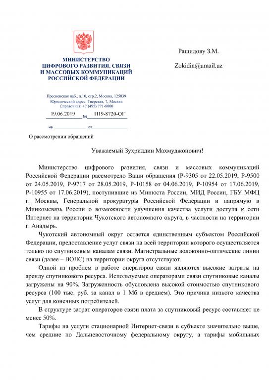 Российской Федерации рассмотрело Ваши обращения (Р-9305 от 22.05.2019, Р-9500