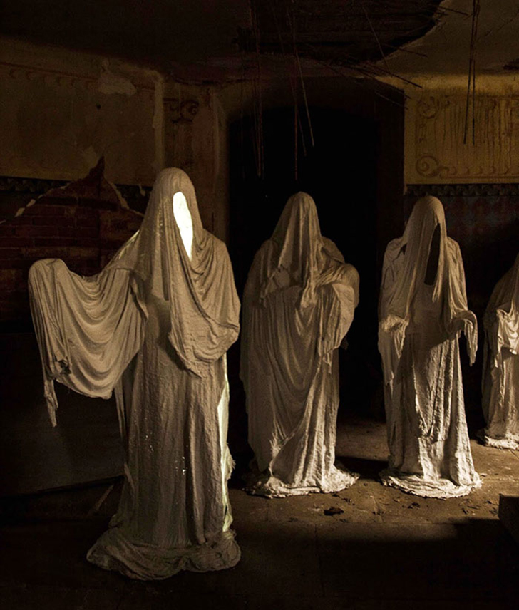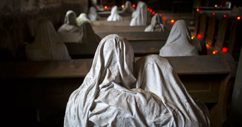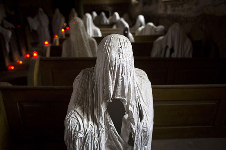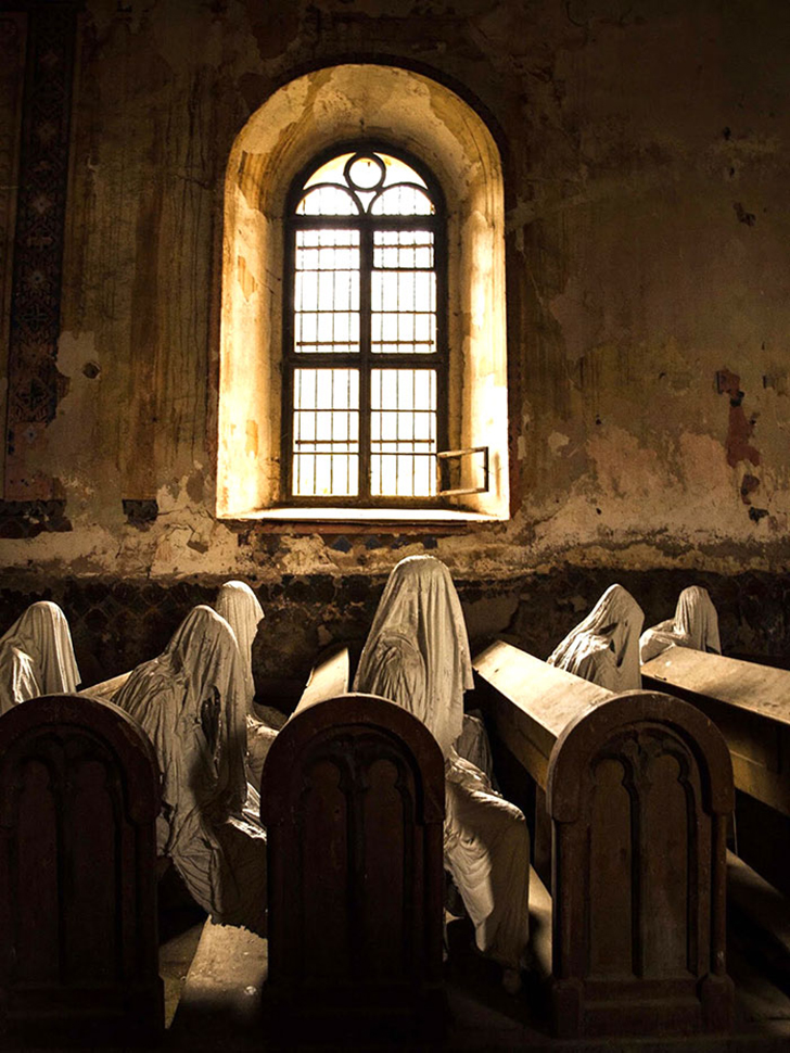 Жуткое чувство страха охватывает каждого входящего в древнее здание церкви. Пронзительный холод, скрипящие полы, старое заброшенное кладбище вокруг костела способны вызвать ужас у любого человека. Но главным "сюрпризом" становятся призраки - белые, мерцающие в полутьме костела фигуры, которые заполняют все пространство от входа до алтаря. Они сидят на скамьях, возвышаются в проходе и у самых стен, стоят рядом с кафедрой, и вместо лиц на вас взирают черные бездонные дыры.