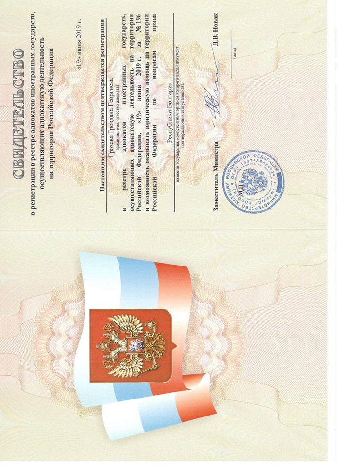 Иностранный адвокат по вопросам права Республики Болгария