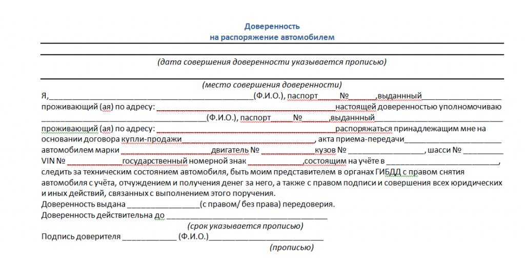 2) специальные (купля-продажа автомобиля или его управление, представительство в ГИБДД и т.д.);