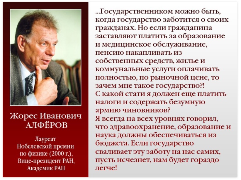 Зато день нашего президента стране обходится в 50 мл рублей, содержание частной собственности высшего чиновничьего аппарата не имеет финансового предела, их лечение и обеспечение также. А людям - работать надо больше (правда не понятно где), лечиться корой дуба и ходить в лаптях.