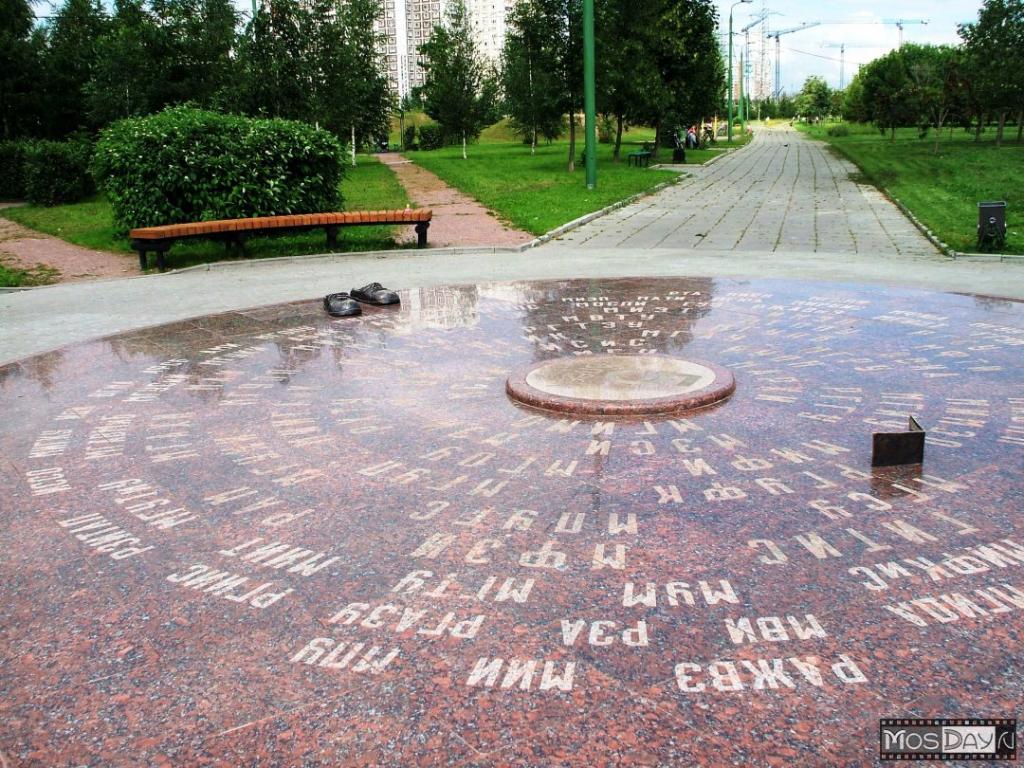 Он представляет собой довольно таки большую гранитную площадку с аббревиатурами многих вузов столицы, на которой установлено возвышение в виде большого пятака.