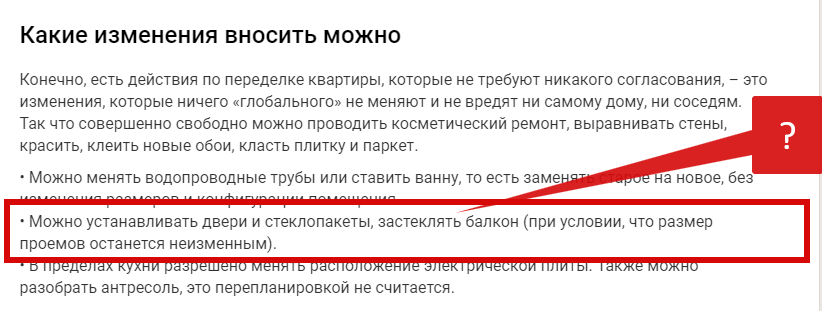 • Можно устанавливать двери и стеклопакеты, застеклять балкон (при условии, что размер проемов останется неизменным).