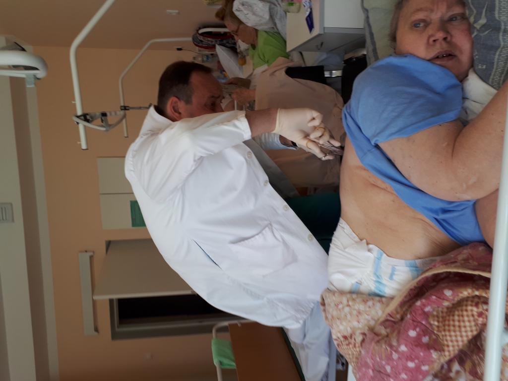Но сказывается неукомплектованность таких отделений персоналом - есть установка ривлекать к помощи кого можно... не вышла санитарка и медсестра попросила помочь поменять памперсы. Перчатки мне дали, но обычные белые тонкие. Когда протаскивала памперс у нее под попоц, палец перчатки порвался.