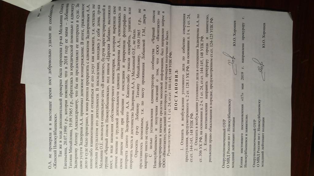 В отношении меня, юриста частной практики, после рассмотрения дела о выселении ответчика Мелькиной Ольги Евгеньевна от своей матери, которой она отказывалась помогать и оплачивать коммунальные услуги, "судья" Новокуйбышевского горесуде Самарской обл. Светлана Король вызвала участников процесса к себе в кабинет и сообщила, что вынесла неправосудное решение из за меня, то есть из за судейской мести. Также "судья" раздала участникам процесса визитки тех адвокатов с кем можно "договориться". После этого в отношении меня стали вкладываться клеветнические посты предположительно от "судьи" Светланы Король и её пособницы Ольги Мелькиной, которая уже призналась в факте клеветы в отношении меня. Председатель Самарского облсуда Вадим Кудинов как всегда отмазал "судью" Король.