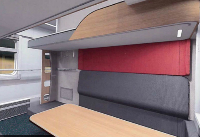 Новые плацкартные вагоны выполнены в серых тонах с вкраплениями красного цвета. Полки для пассажиров расположены друг напротив друга как в купе и по размеру на 17 см длиннее, чем стандартные.