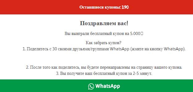 В некоторых случаях жертве предлагают оплатить с банковской карты или счета мобильного телефона 100 рублей за пересылку купона, а заодно подписывают ее на платную услугу, за которую ежемесячно будет сниматься определенная сумма, пока жертва этого не заметит. Естественно, никакого приза она не дождется.