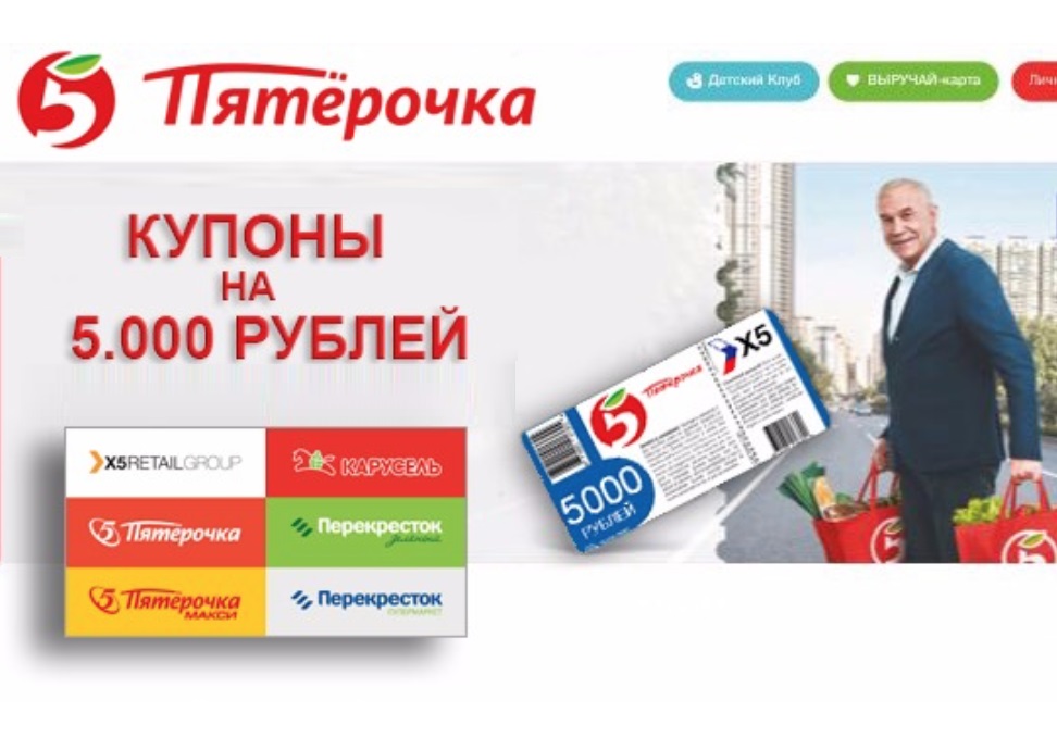 Впервые сообщения о раздаче купонов на ощутимую сумму начали распространяться один год назад – торговая сеть «Пятерочка» праздновала двадцатилетний юбилей, к которому был приурочен ряд акций, активно рекламируемых по телевидению, в Интернете и на улице.