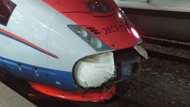Судя по снимкам, кабина «Сапсана» получила незначительные повреждения.