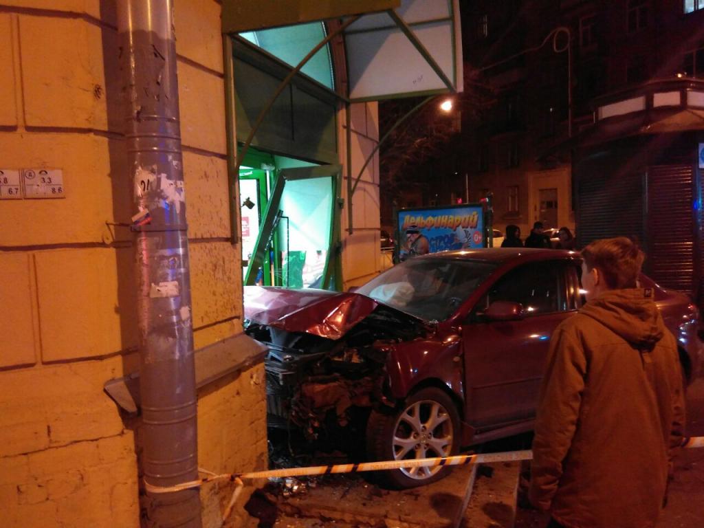 За ночь это второй известный случай с ударом в здание. Первый влетел в стену «Гостинки».