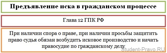 Порядок предъявления иска определен в Главе 12 ГПК РФ, которая содержит в себе: