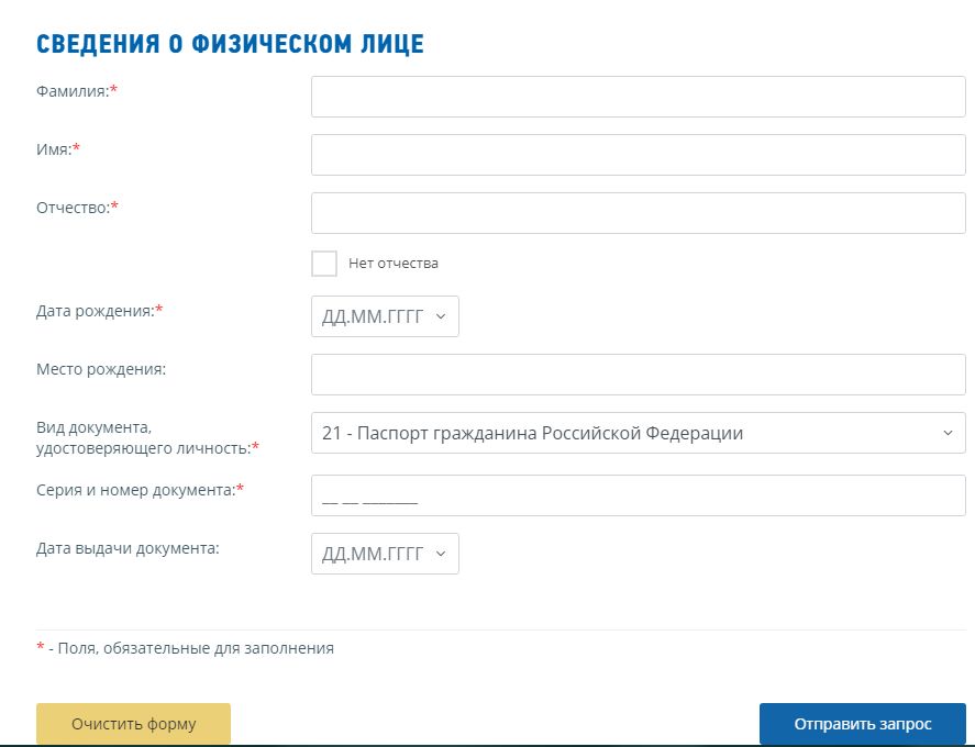 Заполняете все поля со значком *, отправляете запрос. Если ИНН вам ранее был присвоен, на экране он появится. Если нет — идете в ближайшую инспекцию ФНС его получать.
