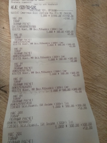 Придя домой, владелец нового аппарата начинает проверять чек и находит в нем лишние пару тысяч рублей за консультацию.
