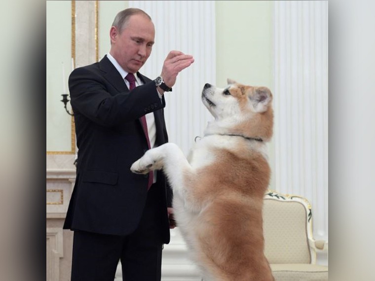 В феврале президент подарил похожую собаку больной аутизмом девочке из Приморья.