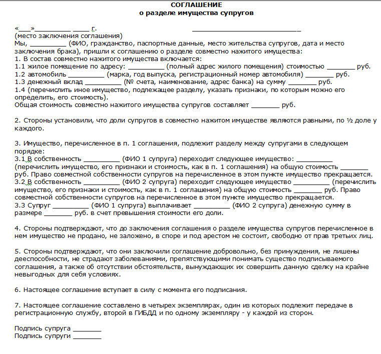 Образец соглашения о разделе