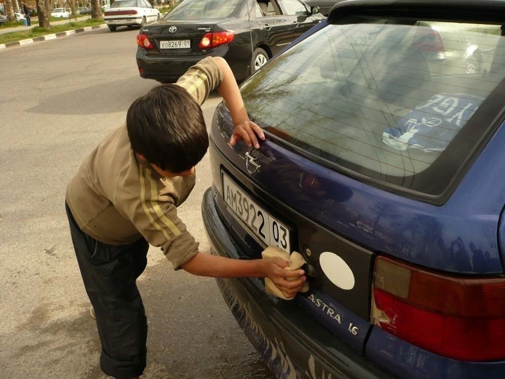 Каждый день иду на работу и прохожу мимо заправки на выезде с которой постоянно образовывается небольшая пробка. Стал замечать ребенка, который бегает среди машин и протирает фары. Кто то из водителей дает за труд деньги, ведь труд должен вознаграждаться.