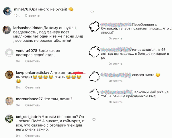 Потерявший славу, заработок, голос и огромную популярность - Юра «подсел» на бутылку, считают пользователи.