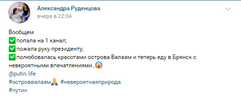 Девушка забыла обо всем, пожав руку Путину на Валааме