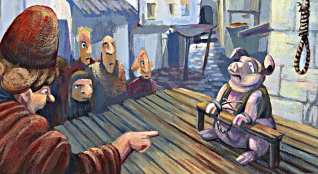 2. В средние века частенько к церковному суду привлекались братья наши меньшие. Подобные дела рассматривались по всем правилам, с участием адвоката, свидетелей, обвинителя. «Обвиняемым» могло стать любое животное, начиная с представителей крупного рогатого скота и, заканчивая саранчой и жуком-носорогом. Домашних животных (скорей всего - кошек), церковь судила за колдовство и обычно приговаривала к смерти. Попавшие под суд, дикие животные, чаще всего обвинялись по статье «вредительство», их «приговаривали» либо к отлучению от церкви, либо высылали за территорию страны. Последний такой приговор в отношении животного был приведен в исполнение в 1740 году.
