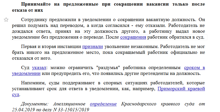 Напомним, суды поддерживают в спорных ситуациях работодателей, которые устанавливают срок для ответа в уведомлении, как, например, Приморский краевой суд.