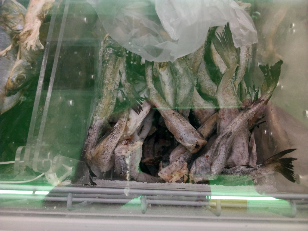 Вот ЭТО точно покупать не хочется, даже для кота. А разве в Оби и озёрах ваших рыбка перевелась, своя, местная? Лично мне обская нравится и щука, и судак, и чебак... А карась на Алтае вообще отличный! У нас в Кузбассе рыбаки свой улов продают, разве у вас не так?