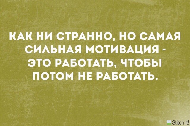 Это был такой понедельничный юмор, если что. Понедельник вообще день тяжкий. Так что — запасаемся силами и терпением работать всю неделю, чтобы не работать в выходные. И по ночам.