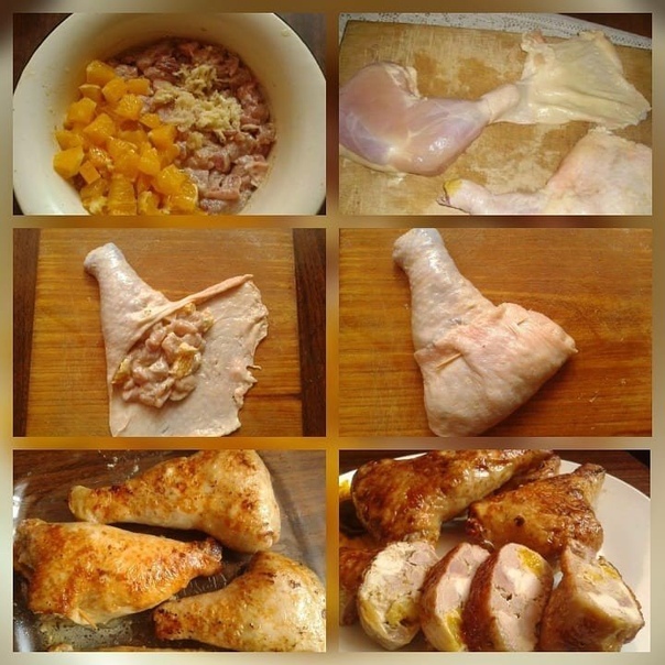 Первым делом, аккуратно снимаем кожу с окорочка "чулком" - это очень просто.