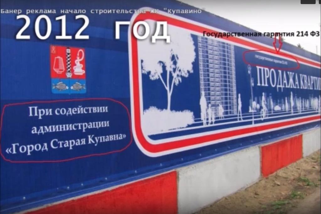 В 2012 году в городе Старая Купавна началось строительство жилого комплекса «Купавино» на 1200 квартир. Деньги с людей собирали под гарантии городской администрации, но дом не построили