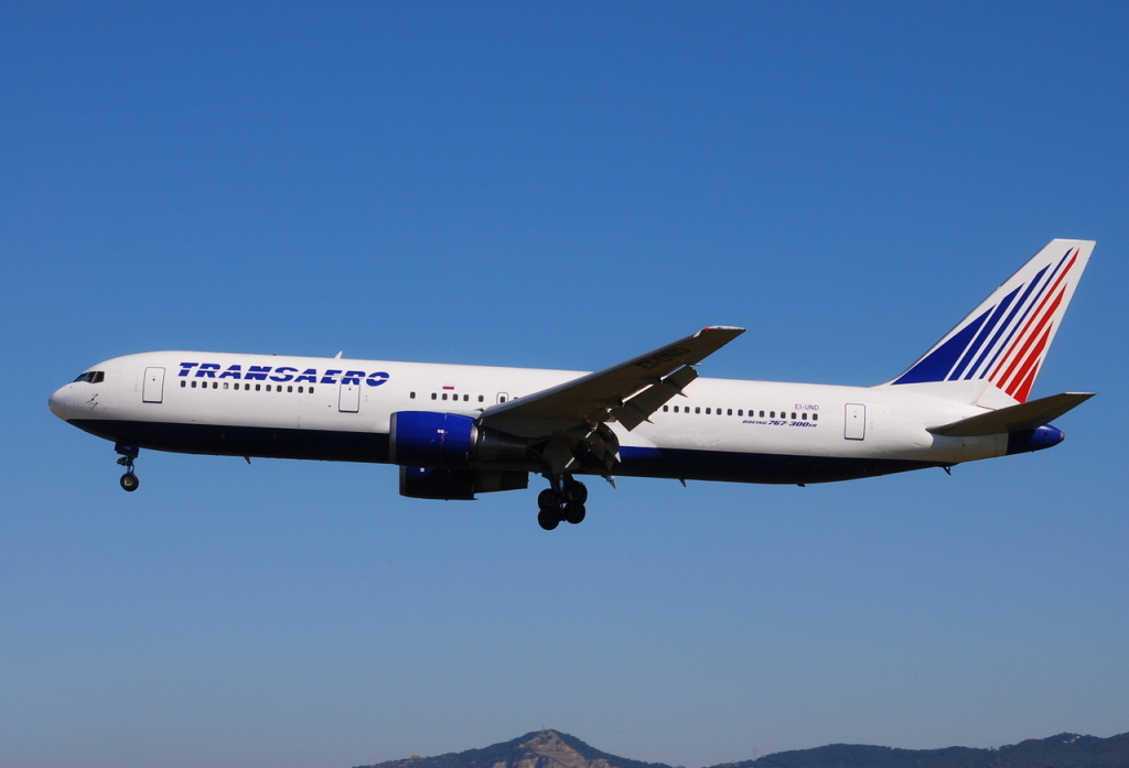 Boeing 767-300 Трансаэро приземляется в Барселоне