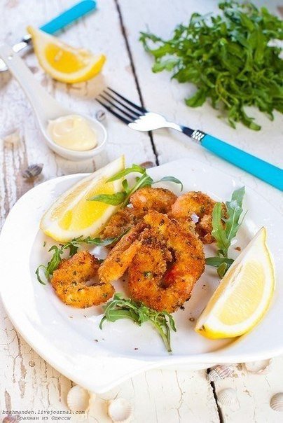 Хрустящие креветки в панировке из хлебных крошек и пармезана