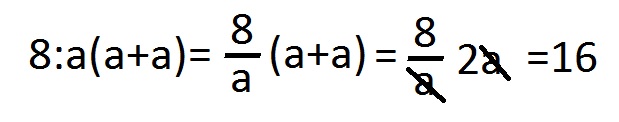 Она пояснила, раз пример написан в строчку, значит все действия стоит выполнять по порядку. Сначала необходимо разделить восемь на два, а затем четыре умножить на 2+2: получаем 16.