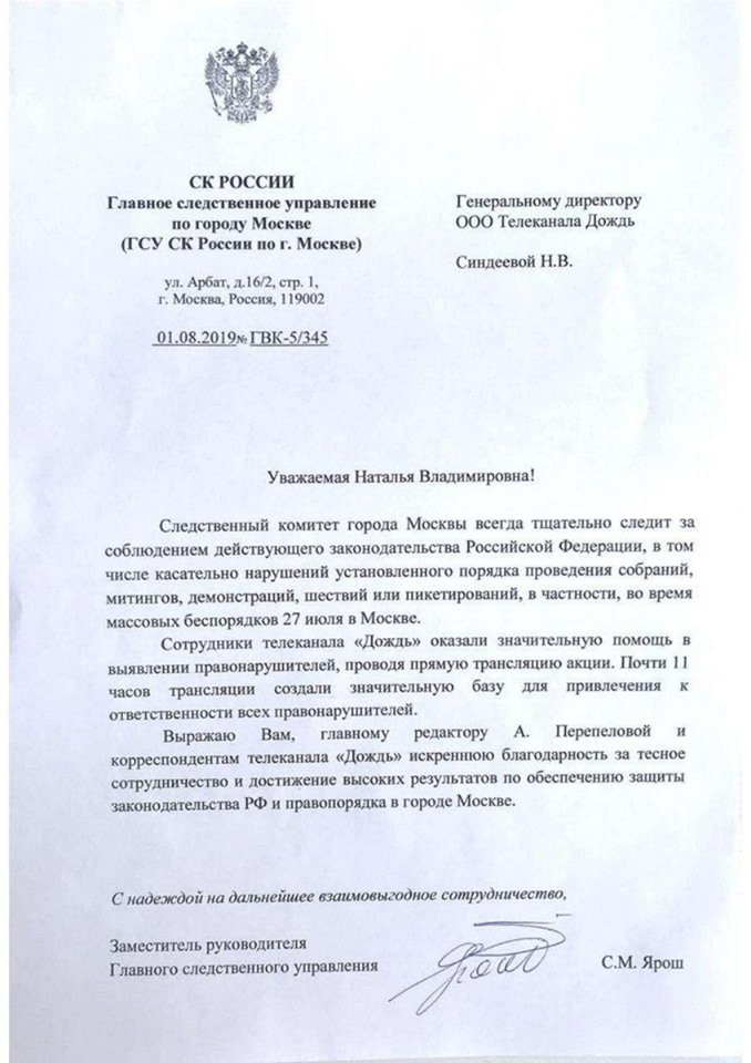 "Также в МВД поблагодарили некоторых лиц за то, что вели прямые трансляции с митинга, тем самым оказали большую помощь полиции в выявлении нарушителей."