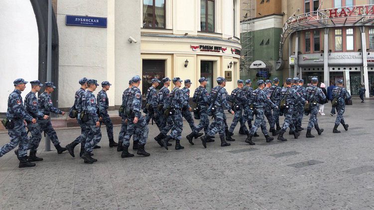 Наш корреспондент - на одной из таких точек сбора у Покровских ворот. По пути туда - по Чистопрудному бульвару - гуляют парами силовики с собаками и без. Они смотрят видео на телефоне, едят мороженое, пьют кофе из Макдональдса. Все они в офицерской форме. Таких пар много, они рассредоточены по всему периметру.