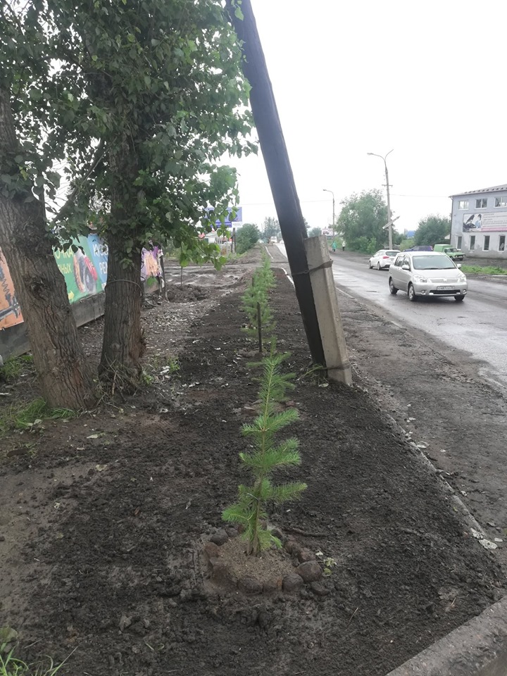 Деревья посадили (скорее воткнули) менее, чем в метре друг от друга, и если даже предположить, что они приживутся, то две третьих деревьев позже тупо погибнут. Дальше-больше - такой же "мяндач" решили высадить вдоль дороги, всего в 1-1,2 метра от проезжей части. И если уже и эти саженцы приживутся, то через года 2-3 ветки будут колоть бока прохожим на тротуаре, а позже - бить по стёклам проезжающих по улице Юбилейной автомобилям. Но это всё лишь с условием того, что их не смоет водой.