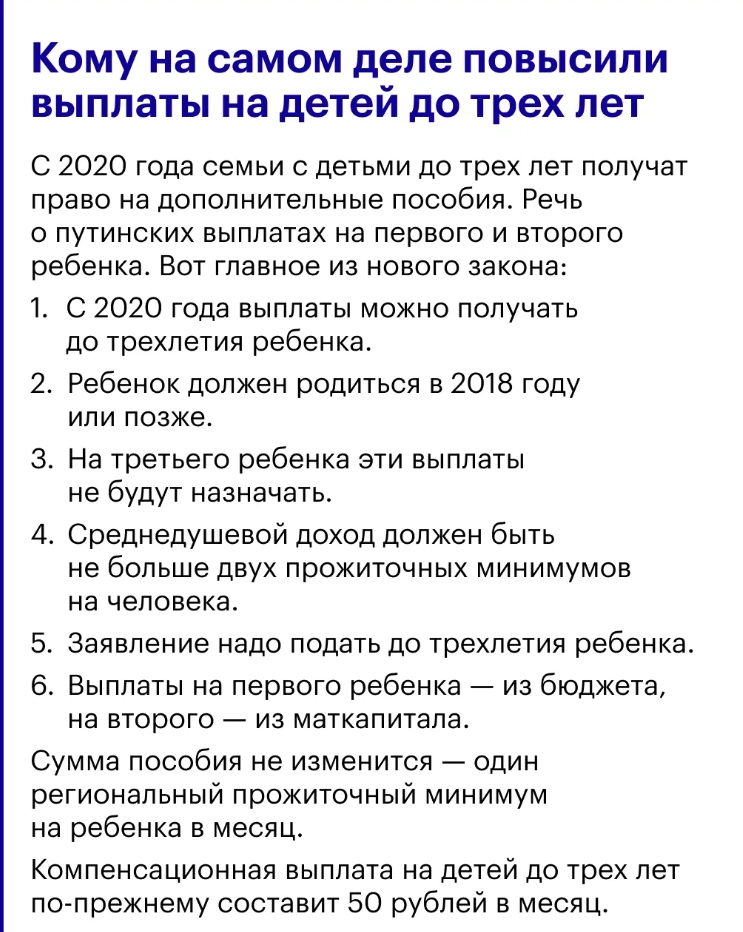 Когда Люди говорят об этом законе, они его связывают с пособием в размере 50 рублей, которое получают некоторые родители до трехлетия ребенка.