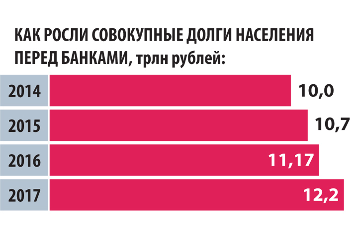 Кому на Руси жить хорошо? Точно сказать не можем по разному говорят, но точно одно в России хорошо жить банкирам. Все деньги России практически у них, часть в Офшорах спрятана, часть используется для спекуляций, часть для втягивания народа России в кабалу. По данным ЦБ, за 2017 г. совокупные долги населения перед банками выросли на 13,2% до 12,2 трлн руб.