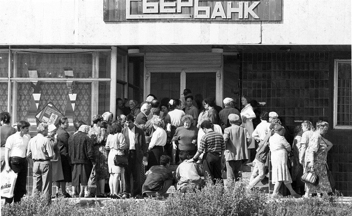 Январь 1991. Советские власти объявили о новой реформе. Необходимо было сократить количество денег у населения. Взамен 50-ти и 100-рублевых купюр появились новые. Многие вклады были заморожены. Снимать деньги с книжек можно было не более 500 рублей в месяц.