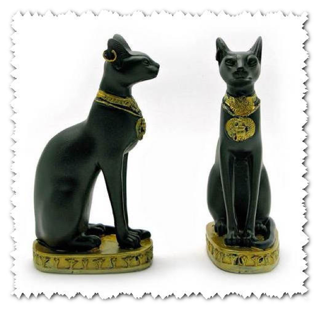 Некоторые древние боги и богини изображены в виде больших кошек. В облике домашней кошки была представлена богиня Бастет. Все кошки считались ее проявлением, а сама Бастет изображалась в виде молодой женщины с кошачьей головой. По той причине, что домашние кошки были известны своим таинственным и скрытным характером, а также способностью видеть в темноте, Бастет и все ее земные проявления стали ассоциироваться с царством мертвых.