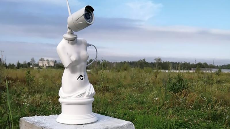 Скульптура Венеры с видеокамерой вместо головы появилась на улице Валерия Гаврилина на Парнасе. Её установил туда художник loketski.