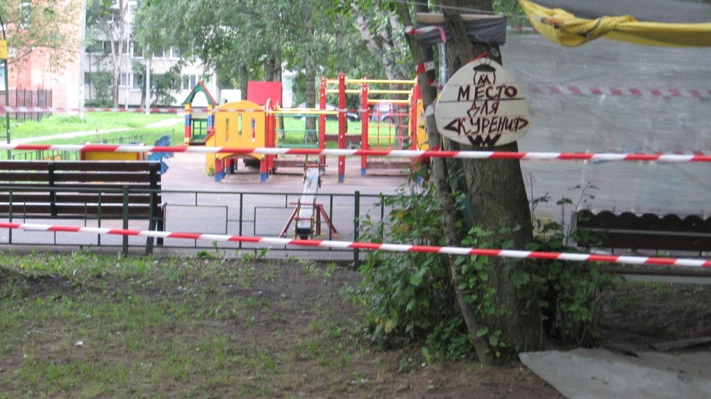 В Выборгском районе пьянчужки организовали рядом с детской площадкой «место для курения»
