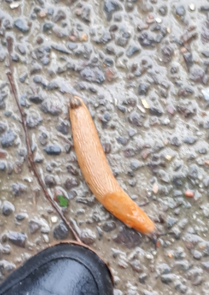 Какой - то слизняк... короче, маленькая змейка. Страшно...